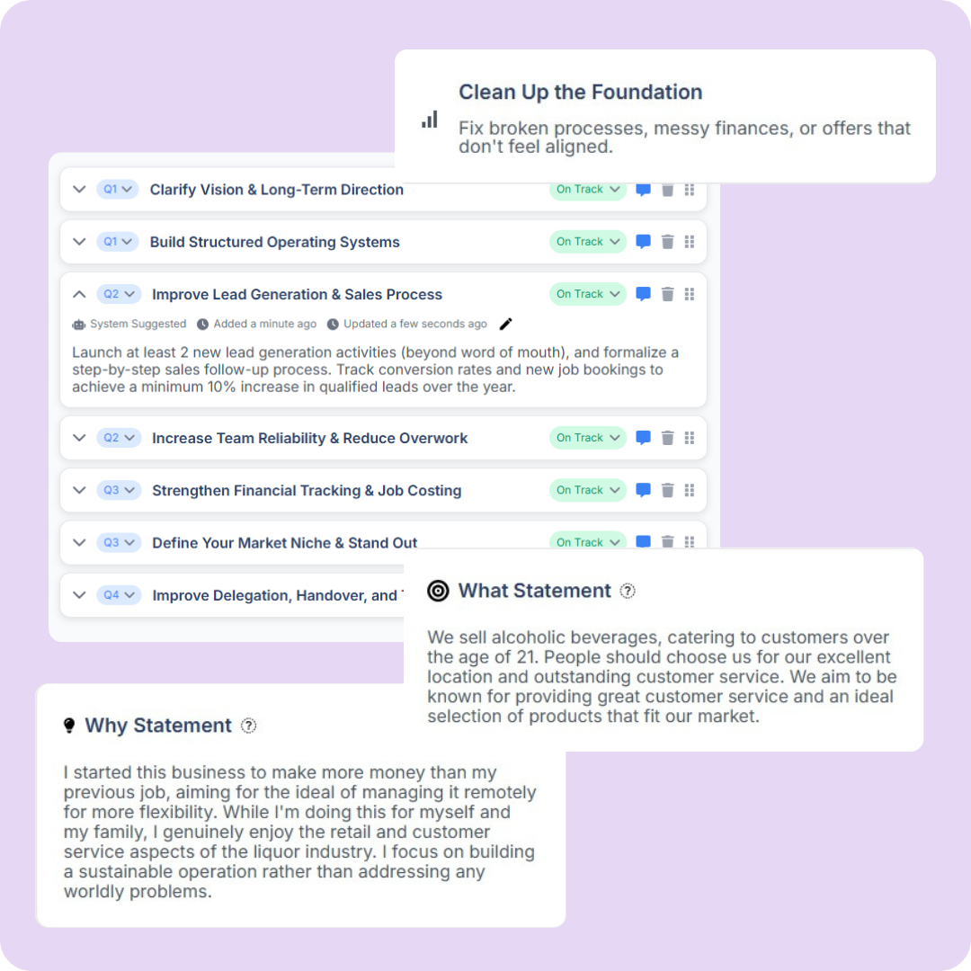 Most business tools give you ideas. ClaritySMB gives you a clear path. Our two-part framework helps you define what matters and follow through with simple, guided execution.